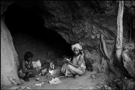 INDIA. 2. Uttarakhand. Haridwar. A saddhu poses next to his own...