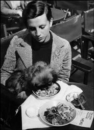 FRANCE. Paris. Ca. 1936. Gerda TARO at a cafe with a little dog....