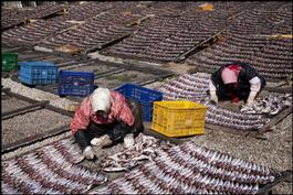 South KOREA. East coast. GANGGU harbour. Drying fishes under...
