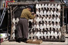 South KOREA. East coast. GANGGU harbour. Squids for drying at...