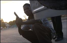 HAITI. Port-au-Prince. 02/2004. An injured "Chimere" who'd been...