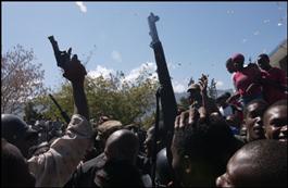 HAITI. Port-au-Prince 02/2004. Welcomed by residents, armed opposition...