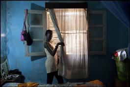 SENEGAL. Seynabou Samb with her sister in the bedroom. Seynabou...