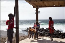 SENEGAL. Children playing near the garbage incineration at Ngor...