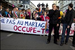 Opponents of gay marriage, and their leader Frigide Barjot, protest in Paris as the law (Taubira) authorizing same-sex marriage has just been passed in the national Assembly.