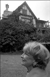 Spanish sculptor Eduardo CHILLIDA's wife outside their home.