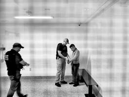 USA. Portland, Oregon. 2018. An apprehended immigrant at an...